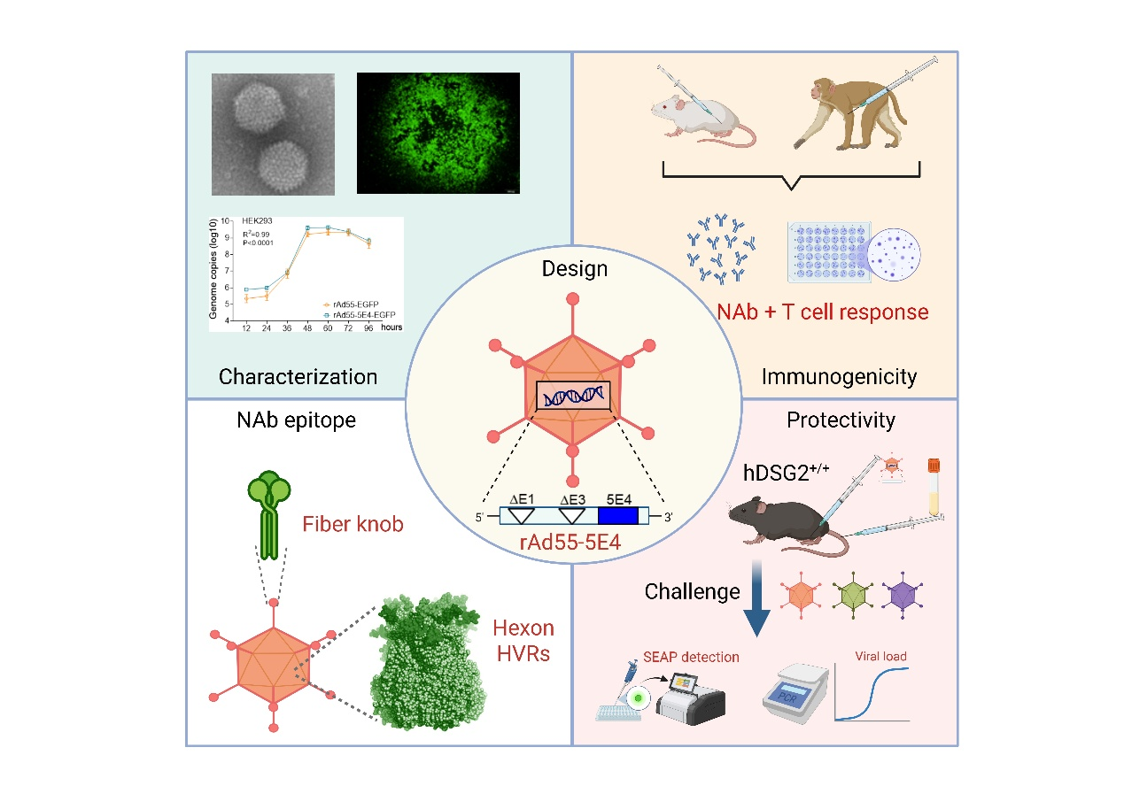 近日,中国科学院广州生物医药与健康研究院联合广州医科大学/呼吸疾病全国重点实验室、广州国家实验室等在国际知名期刊《Molecular Therapy》上发表题为“A replication-incompetent adenovirus type 55 vaccine induces broad and durable protective immunity against pathogenic adenoviruses” 的研究论文(https://doi.org/10.1016/j.ymthe.2025.12.027),报道了研发的一款复制缺陷型HAdV-55候选疫苗,可诱导针对呼吸道高致病性HAdV-55,HAdV-11和HAdV-14的长效保护性免疫应答。