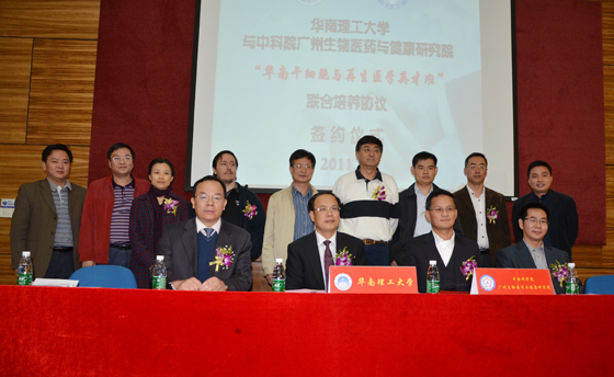 12月8日,中科院广州生物医药与健康研究院与华南理工大学共同签署了“华南干细胞与再生医学英才班”联合培养协议。华南理工大学教务处处长李正教授主持签约仪式。广州生物院院长裴端卿研究员与华南理工大学副校长邱学青教授分别代表合作双方在协议上签字。广州生物院华南干细胞与再生医学研究所、感染与免疫研究中心负责人、科学家代表及管理部门负责人,华南理工大学相关学院、部处负责人及师生代表参加了签约仪式。