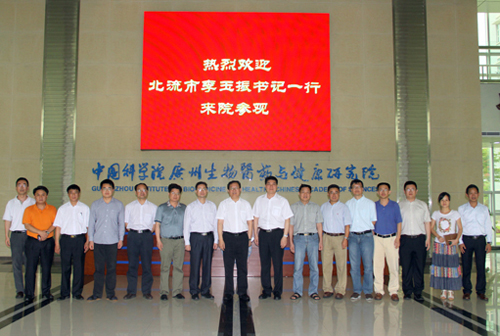 4月23日,广西壮族自治区北流市市委书记李玉振、市长何东真率党政代表团一行20多人到中科院广州生物医药与健康研究院参观考察。广州生物院党委书记黄建冲热情接待了李玉振一行。
