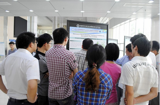 本次墙报展共展出49张海报,分别从“抗药性白血病新药研发”、“治疗老年痴呆药物研发”、“COX-2苯并吡喃抑制剂研发”等七大版块展示了药物研发中心近6个月来的科研成果。展出期间,墙报作者向参观者进行热心的讲解;参观观众用心聆听,不时提问并展开探讨,气氛热烈;评委也根据展览内容、学术价值等方面对展出作品进行了现场评分。