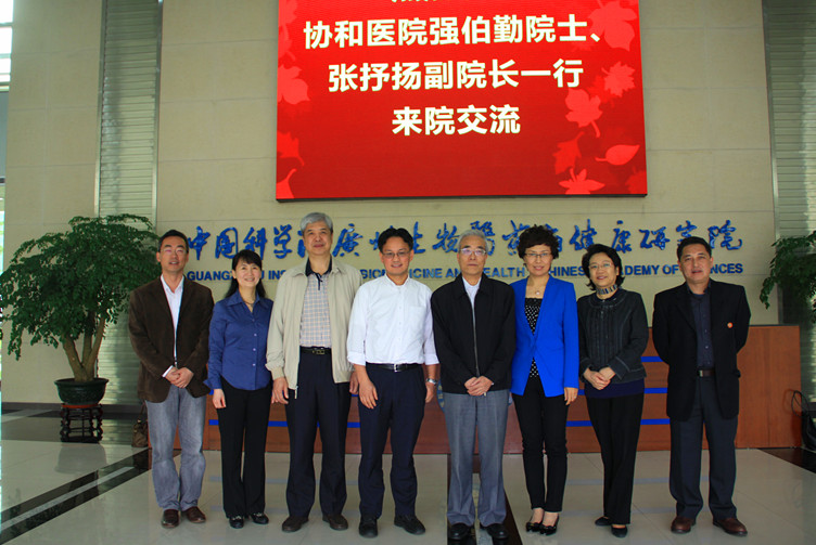 4月13日,北京协和医院副院长张抒扬、强伯勤院士等领导专家一行5人访问中科院广州生物医药与健康研究院,双方就进一步加强科研合作进行了会谈。生物院院长裴端卿、公共健康所所长李尹雄等参加了会议。