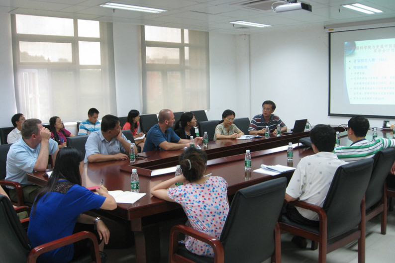 朱相彬以翔实的数据介绍了中国科学院大学留学生培养情况和对发展中国家的人才培养计划,解读其中的激励政策、招生条件及其注意事项,并交替运用中、英语言与导师们尤其是外籍导师进行互动交流,报告会气氛热烈。