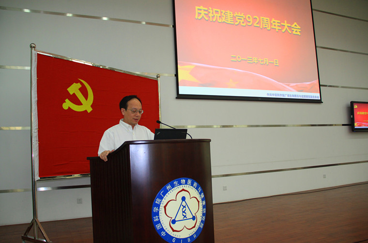 7月1日,中科院广州生物院召开庆祝建党92周年大会,院长裴端卿、副院长朱咏峰、党委副书记侯红明及全院党员、入党积极分子参加了会议。大会由朱咏峰主持。