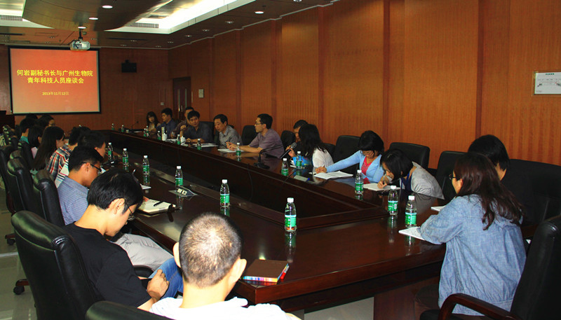 11月12日,中国科学院党组成员、副秘书长、院党的群众路线教育实践活动领导小组副组长何岩参加了中国科学院广州生物医药与健康研究院(以下简称生物院)党的群众路线教育实践活动青年科技人才座谈会。座谈会由生物院党委书记陈广浩主持。