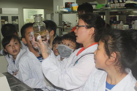 小朋友参观化学实验室