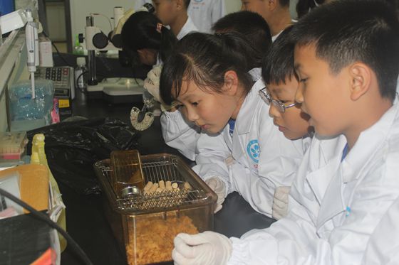 光听听讲座哪里能体会到科学世界的精彩!那就走进实验室,感受科学实践精神,怎么样?小朋友分别到克隆组、寄生虫组、干细胞组、斑马鱼组、化学组进行参观!