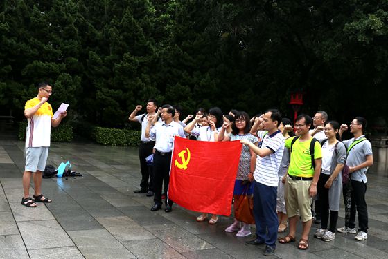 当天上午,天空下着毛毛细雨,广州生物院行政党支部全体党员佩戴党徽,来到黄花岗七十二烈士陵园,向烈士纪念碑敬献了鲜花,在党旗下重温了入党誓词,瞻仰了烈士纪念碑,向革命先烈表达无限崇敬与哀思之情。
