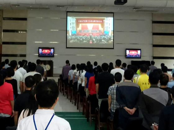 10月18日上午,广州生物院组织全院职工、学生党员在学术报告厅集中收看中国共产党第十九次全国代表大会开幕式。