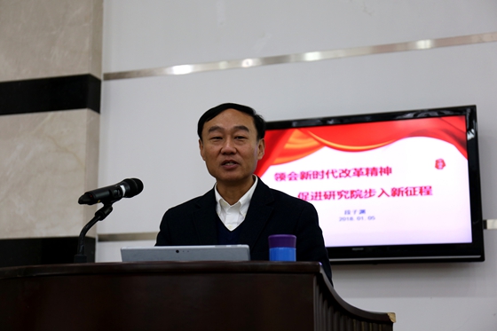 段子渊同志在报告的最后勉励大家,要把十九大作出的新部署、新要求和习近平总书记重要讲话蕴含的新思想、新观点,转化为谋划发展的正确思路,转化为推动工作的强大动力;从我做起,从小事做起,从完成一件“难事”做起;严守底线,忠于职守,敢于担当,脚踏实地,为科技创新事业和研究院的发展贡献力量,将个人理想价值的实现融入国家和民族伟大复兴的事业中,通过奋斗实现每个人的梦,实现中华民族伟大复兴的中国梦!