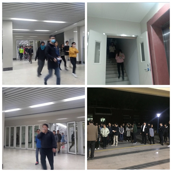 晚上20时30分,消防警铃突然拉响,全楼消防广播迅速传来需紧急疏散的通知,研究生公寓里的全体人员迅速离开房间,并在 3分钟内有序地撤离到消防楼梯内。随后,大家从安全通道跑下楼,6分钟后安全撤离至研究生宿舍楼前空旷处。