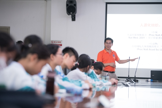 广州生物院苏钟研究员、赖良学研究员、李鹏研究员、陈捷凯研究员、王帅博士分别作了题目为“我们的伙伴寄生虫哪儿去了”、“神经退行性疾病基因修饰猪模型培育”、“细胞免疫疗法研究进展”、“干细胞,你知道和你不知道的”、“结核病菌的前世今生——分享科学防治结核病”的科普讲座。科学家们深入浅出,从宏观到微观、从静态到动态,从无声到有声,全面地展示干细胞与再生医学、化学生物学、感染与免疫等学科的科学魅力。