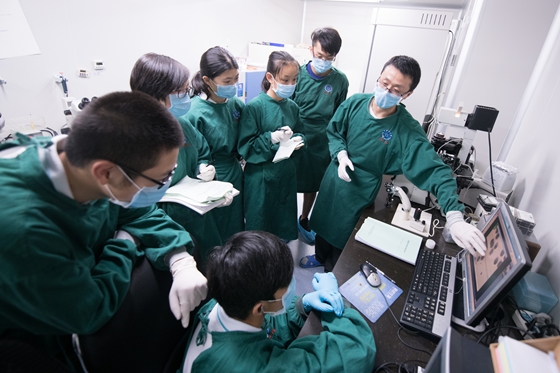 抱抱替人类生病的克隆猪,探秘鼠小弟、寄生虫的家,暗中观察会发光的病毒、观摩体细胞核移植。在开放实验室环节,学生们分组参观了呼吸疾病国家重点实验室、中科院再生生物学重点实验室、化学标准实验室和实验动物中心等。