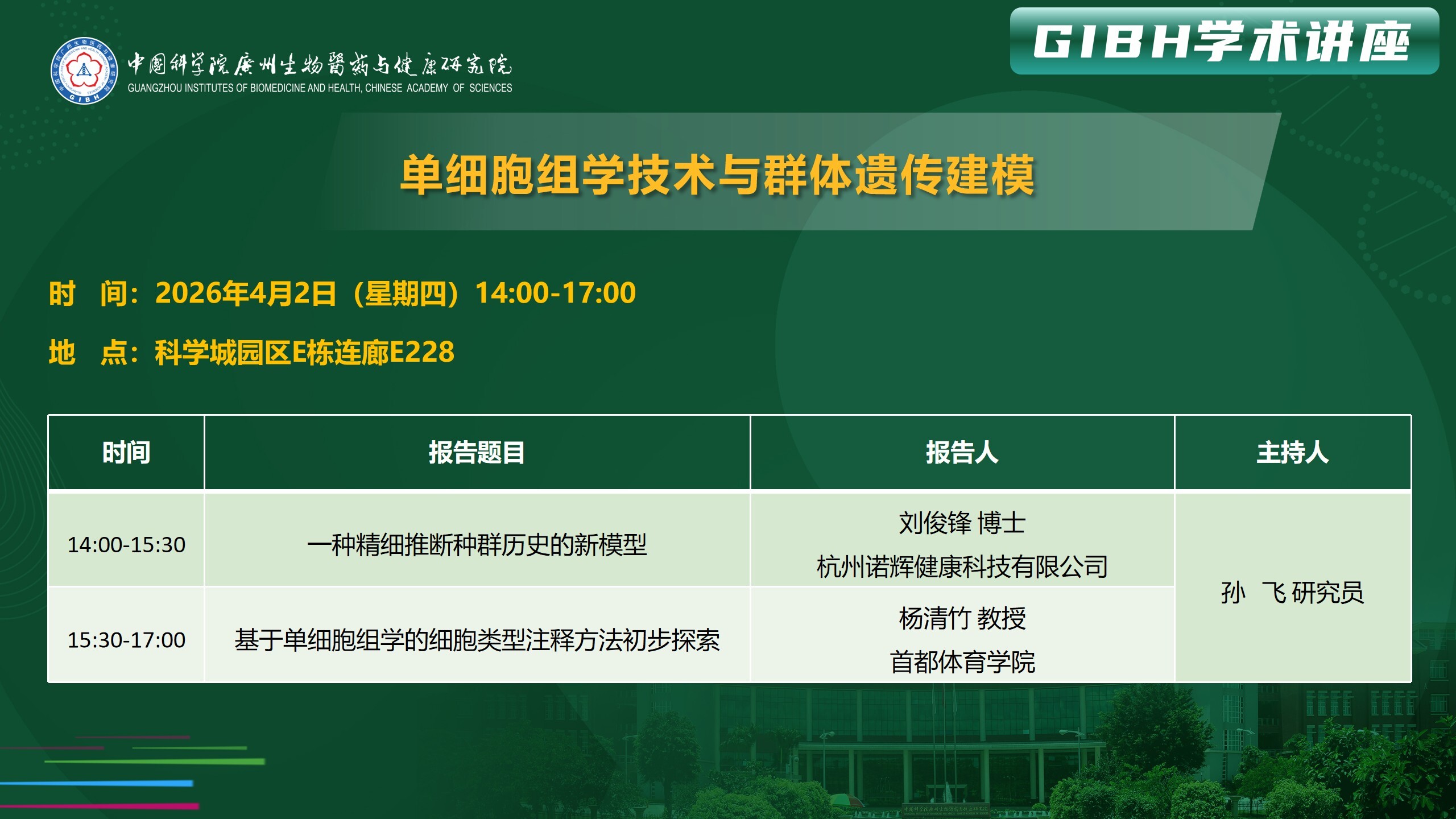 2026年4月2日学术讲座:单细胞组学技术与群体遗传建模