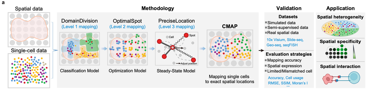 本研究构建了单细胞空间位置推断模型CMAP,建立了“单细胞-空间-功能”的多维解析框架,推动了单细胞转录组与空间组学的深度融合,为疾病机制解析和精准医学发展提供了新的研究思路。相关成果于2025年7月15日发表在Nature Communications期刊。