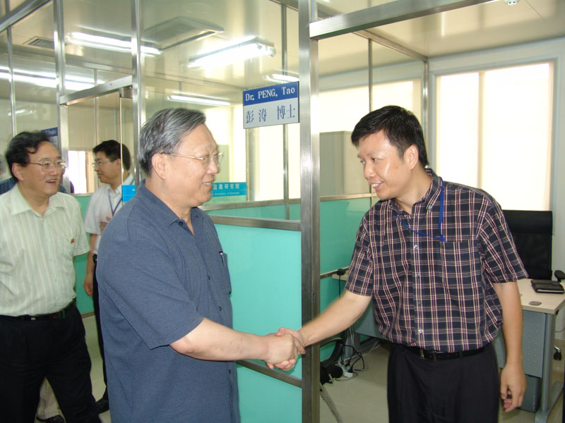 陪同路甬祥院长视察的还有,中科院生命科学与生物技术局康乐局长、中科院广州分院陈勇院长和党组书记杨新潮等。