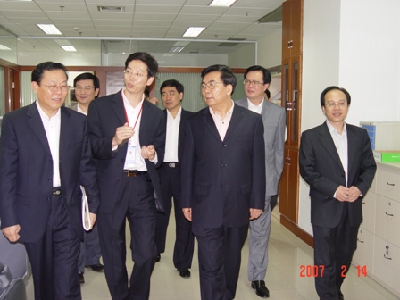 参观过程中,白春礼副院长和李志刚秘书长与部分研究人员进行了亲切交谈,了解他们的科研工作情况,并且鼓励他们在原有取得成绩的基础上,继续努力拼搏,勇攀科学高峰,争取早日出成果。