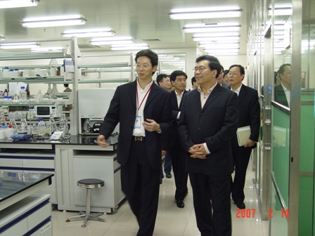 白春礼副院长在广州医药院院长陈凌、党委书记黄建冲的陪同下,听取了该院的工作汇报,参观了疫苗和生物药物、整合生物、分子医学等六个研究中心的实验室以及公共仪器中心和实验动物中心。在听取汇报和参观后,他充分肯定了该院筹建成立以来所取得的工作成绩,同时对如何做好科技人才队伍建设,如何发挥科研仪器设备的作用,如何做好新建院所的可持续发展等方面作了重要指示,并且对该院科研园区建设工作给予了极大的关注。