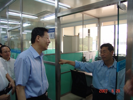 李学勇书记首先在研究院党委书记黄建冲的陪同下,参观了研究院部分实验室和仪器中心,询问了建设与科研工作进展情况,并与部分研究人员进行了交谈。