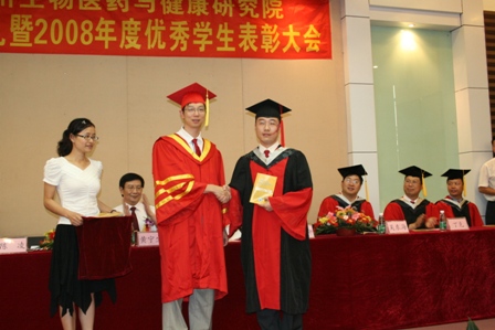 毕业典礼在庄严嘹亮的国歌声中开始。裴端卿首先宣读了我院培养的16名首届毕业研究生名单,包括博士毕业生1名,硕士毕业生15名。院长陈凌逐一将毕业生学位帽上的流苏从右面拨到左面,并向每位毕业生颁发了纪念册。科教处副处长古京宣读了获中科院研究生院表彰的三好学生、优秀学生干部以及我院优秀研究生奖学金获得者名单。