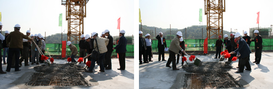 2009年元月18日,晴空万里,艳阳高照。中国科学院广州生物医药与健康研究院科研园区建设一期工程主体结构的封顶仪式,于上午11时30分在施工现场举行。