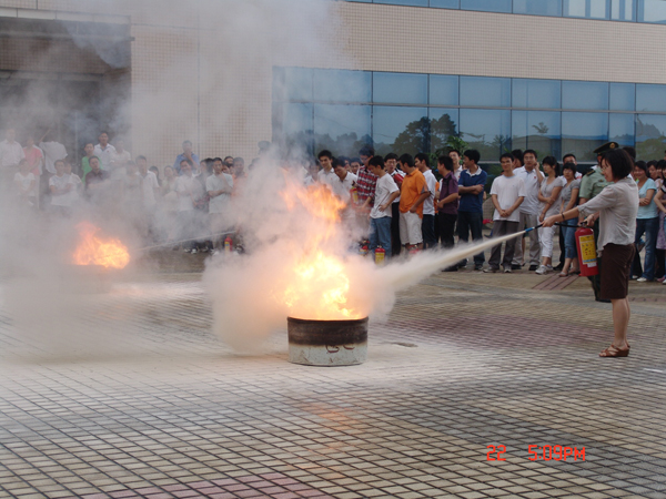 教官生动地讲授了燃烧爆炸的基本知识、火灾危害、火灾种类、火灾的预防、初起火灾的扑救以及安全疏散逃生等知识。在灭火演练部分,教官现场讲解了干粉灭火器和二氧化碳灭火器的正确使用方法并进行了示范,然后随机挑出现场职工学生共四十多人参加了灭火演练。