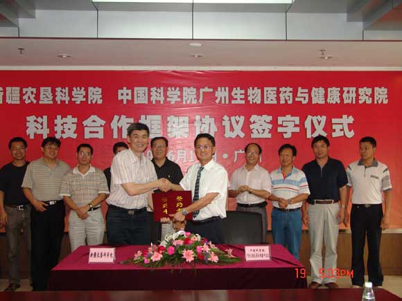 根据《关于进一步促进新疆经济社会发展的若干意见》(国发〔2007〕32号)文件精神,结合建设创新型国家的战略部署和中国科学院加强与国家创新体系各单元联合与合作的实际需求,6月19日,我院与新疆农垦科学院隆重举行了科技合作框架协议签字仪式。