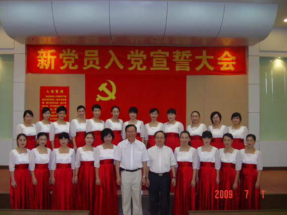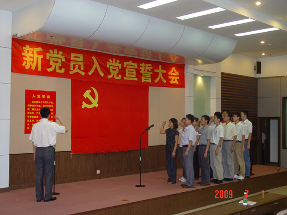 为纪念中国共产党成立88周年,7月1日下午,我院召开党员大会,隆重举行了庄严的新党员入党宣誓仪式。党委书记黄建冲出席宣誓大会并作重要讲话,副院长朱咏峰主持了会议,陈小平等12位预备党员进行了入党宣誓,全院党员同志和入党积极分子共140余人参加了大会。