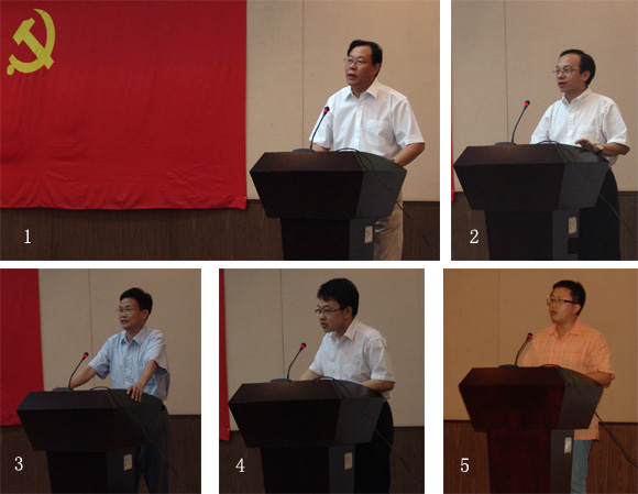 1、黄书记讲话 2、朱副院长主持会议 3、新党员代表陈小平发言 4、研究生新党员代表王玮发言