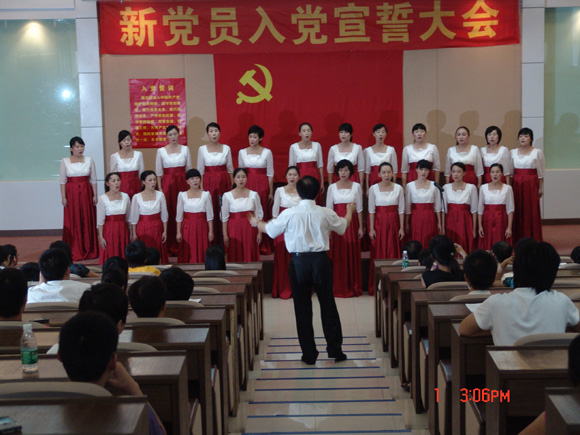 大会在雄壮的国际歌声中闭幕。会后,我院女子爱乐合唱团演唱了《我的根啊,在中国》等两首歌曲,用歌声庆祝我们伟大的中国共产党88周年华诞。