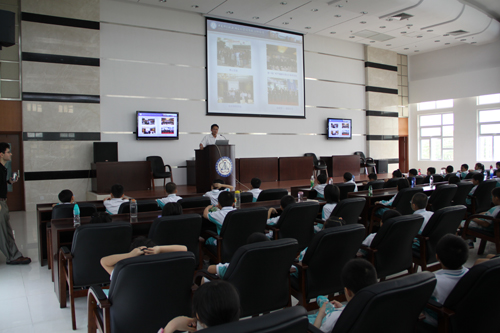 裴端卿向前来参观的师生致欢迎辞,并介绍了生物院的发展历史、建院目标与定位和我国生命科学领域发展情况,同时就学生感兴趣的问题作了生动的讲解。裴端卿鼓励学生们能好好参观,回去认真学习,将来投身到生命科学研究领域中来,为祖国科研事业作贡献。