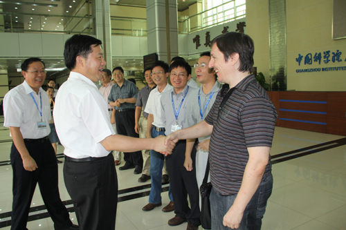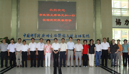 8月13日,广州市政协主席林元和到中科院广州生物医药与健康研究院调研,广州市副市长贡儿珍、萝岗区区长石奇珠以及广州市政协、广州开发区的有关领导陪同考察。广州生物院院长裴端卿、党委书记黄建冲接待了林元和一行。