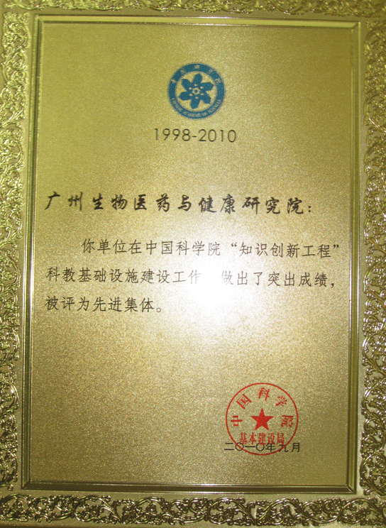 9月14日至16日,中国科学院召开了基建工作总结交流会议。会议对中国科学院知识创新工程十三年的基本建设工作进行了总结,同时对在此期间做出了突出贡献的集体、个人进行了表彰。广州生物院荣获“中科院知识创新工程科教基础建设先进集体”称号。
