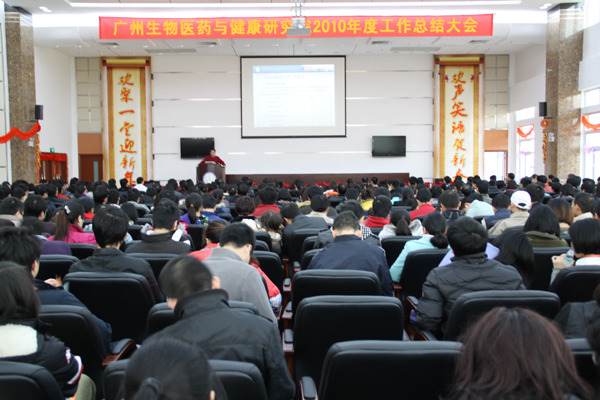 1月21日,中国科学院广州生物医药与健康研究院召开了2010年度工作总结暨表彰大会,大会由党委书记黄建冲主持,院长裴端卿、副院长朱咏峰以及生物院全体师生员工400余人参加了会议。