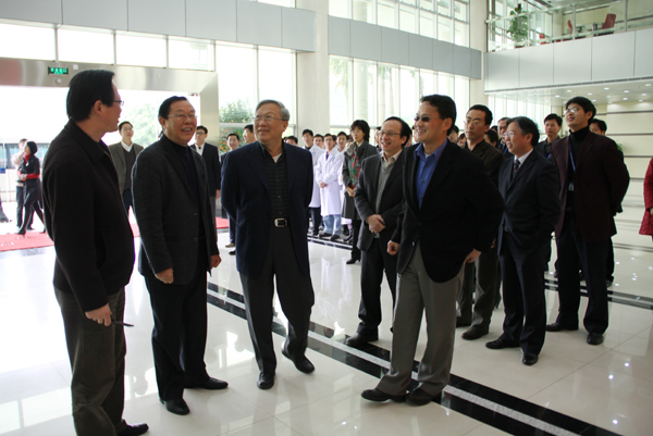路甬祥一行先后视察了干细胞与再生医学研究所、再生生物学重点实验室、药物研发平台、感染与免疫中心、呼吸疾病重点实验室,现场听取了实验室在科研进展、平台建设、运行管理等方面的情况汇报,并和科学家进行了亲切的交流。