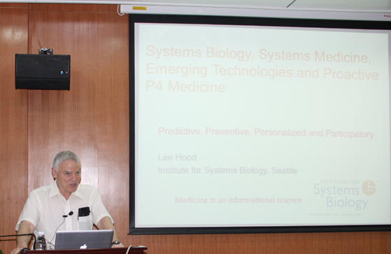 会上,Leroy Hood教授系统描述了系统生物学、系统医学、P4医学(predictive, personalized, preventive and participatory)的建立、发展及新兴技术对这些学科的促进作用。同时,以其实验室的神经变性疾病(朊病毒)和脑肿瘤(胶质母细胞瘤)小鼠模型为例,详细讲述了如何应用系统方法进行疾病治疗的研究。最后,他展望未来5到20年,医学的发展将从目前应对疾病的状态模式逐步转化为一种P4(可预测的、个体化的、预防的和参与性的)模式,这一模式将对医疗保健产生重要的影响。