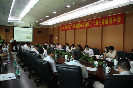 评价会上,朱咏峰向全体参会人员汇报了广州生物院2010年至2011年反腐倡廉工作情况。随后,出席会议的人员对广州生物院反腐倡廉工作进行了民主测评。分院检查组依据中科院研究所反腐倡廉工作量化评分细化标准对广州生物院反腐倡廉工作进行分类检查及评价打分,最后结合检查情况,向生物院领导进行了意见反馈。