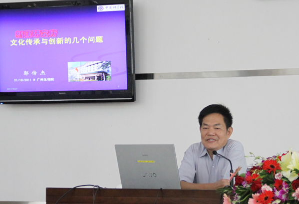 10月21日,中科院广州生物院召开全院职工师生大会,邀请中科院原党组副书记、中国科技大学原党委书记郭传杰作创新文化建设专题报告。