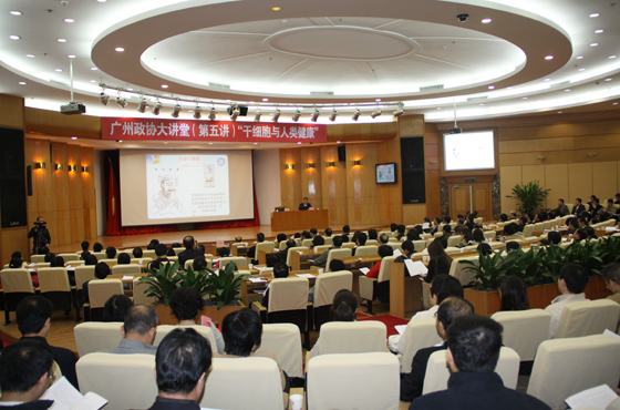 12月2日上午,“广州政协大讲堂”第五讲在广州市政协大楼常委会议厅开讲。中科院广州生物医药与健康研究院院长裴端卿应邀作了题为“干细胞与人类健康”的专题报告。广州市政协主席林元和,副主席平欣光、潘胜燊、简文豪,秘书长李维杰,广州市政府各相关部门负责人,广州市政协常委会组成人员及社会各界人士500多人出席了报告会。