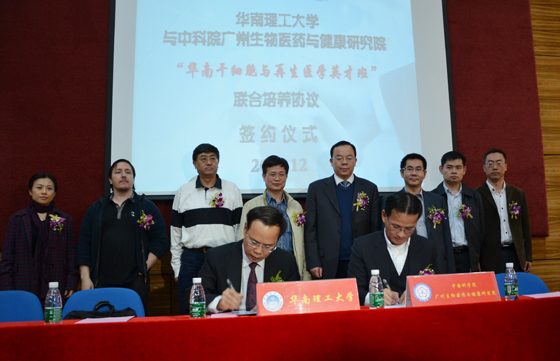 12月8日,中科院广州生物医药与健康研究院与华南理工大学共同签署了“华南干细胞与再生医学英才班”联合培养协议。华南理工大学教务处处长李正教授主持签约仪式。广州生物院院长裴端卿研究员与华南理工大学副校长邱学青教授分别代表合作双方在协议上签字。广州生物院华南干细胞与再生医学研究所、感染与免疫研究中心负责人、科学家代表及管理部门负责人,华南理工大学相关学院、部处负责人及师生代表参加了签约仪式。