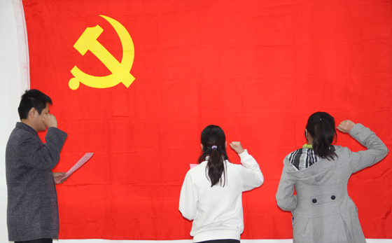入党宣誓仪式在庄严的国际歌声中开始,张慧、王安兰等新党员在鲜红的党旗下庄严宣誓,表达了自己对党的信仰和为共产主义事业奋斗终身的信念。