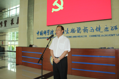 院党委书记黄建冲在会上讲话,他指出:做一名共产党员是光荣的、自豪的,要牢记肩负的责任和使命,要在任何时候把国家的利益、民族的利益、人民的利益放在首位。他强调,党员要做到思想上始终清醒、政治上始终坚定、作风上始终务实、工作上不断创新,以研究院建设和发展的大局为重,增强服务国家战略需求的责任感和自豪感,增强建设一流研究院的紧迫感和使命感。他号召,在建党九十一年周年之际,党员同志要以饱满的热情,在建设研究院中,充分发挥党组织和共产党员的先进性,充分发挥党员的先锋模范作用,为建设一流研究院,为我国的医药健康事业做出自己的贡献,以优异成绩迎接党的十八大召开。