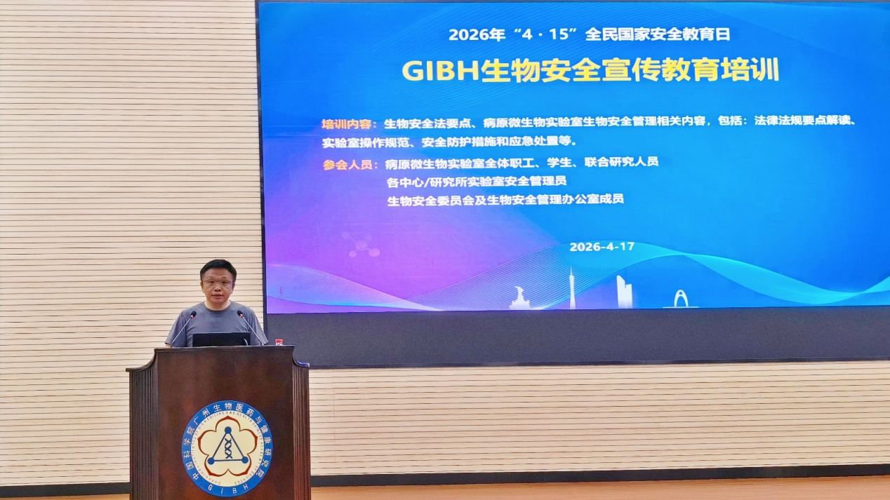 4月17日,中国科学院广州生物医药与健康研究院(简称 “广州健康院”)组织开展生物安全专题培训会,深入践行总体国家安全观,增强科研人员生物安全意识和实操能力。培训会由科技发展处副处长黄洲萍主持,党委副书记、纪委书记徐海,副院长蔡陈崚出席会议,病原微生物实验室70余名师生及科研人员参加培训。