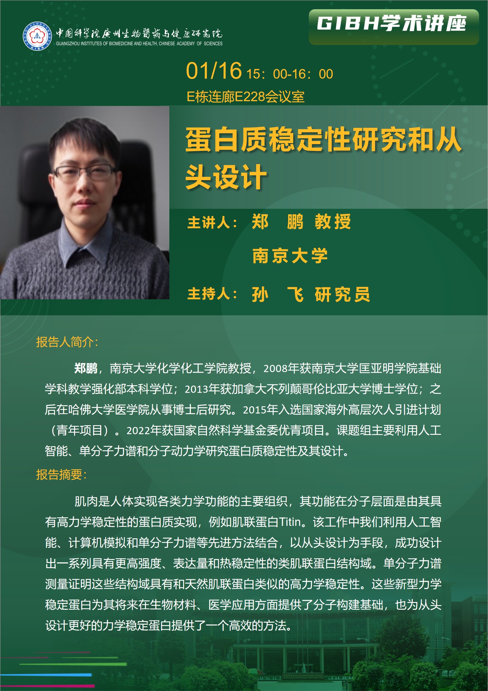 2026年1月16日学术讲座:蛋白质稳定性研究和从头设计