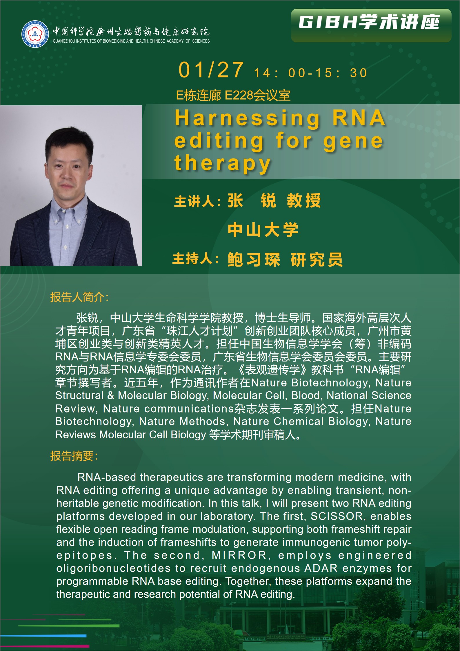 2026年1月27日学术讲座: Harnessing RNA editing for gene therapy